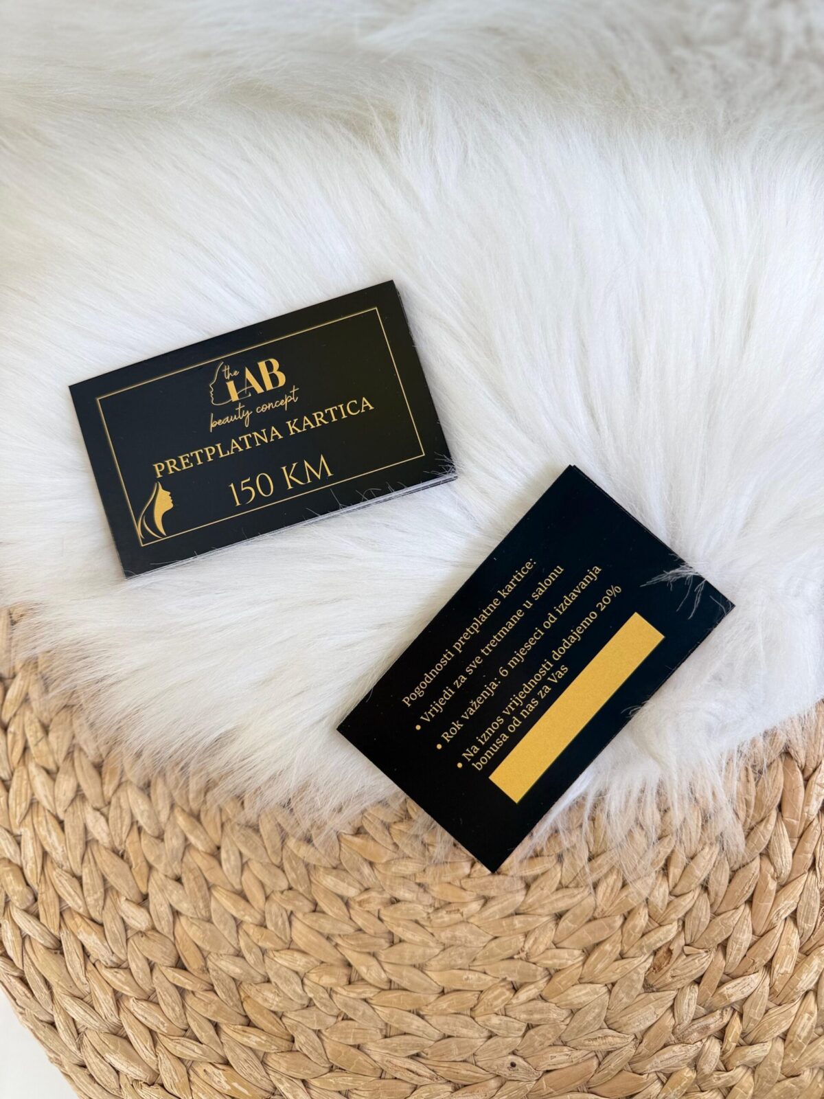 Pored pretplatnih kartica, nudimo i poklon bonove The Lab Beauty Concepta: na vrijednost koju odaberete, mi darujemo još 20% od nas za Vas.